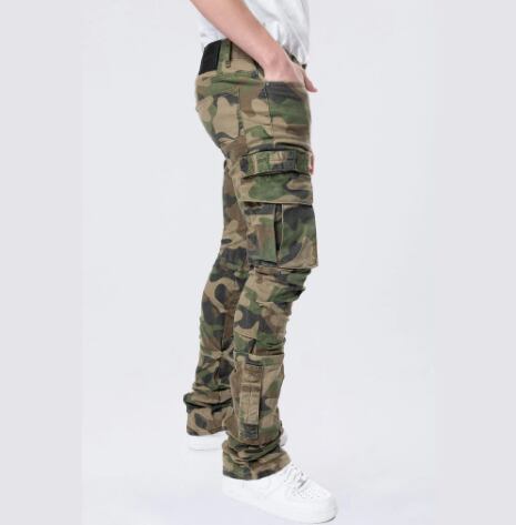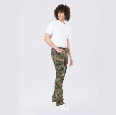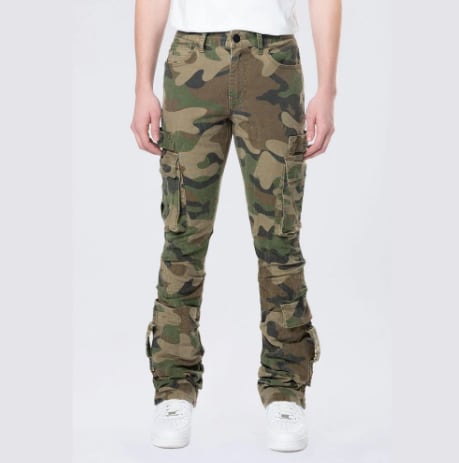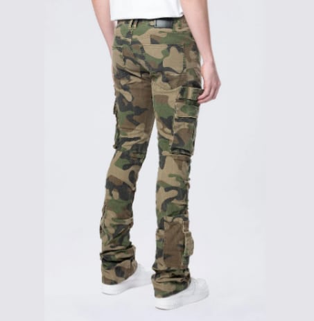 SMOKE RISEスモークライズ/STACKED FLARED CARGO STRAP CANVAS PANTS - WOOD CAMO