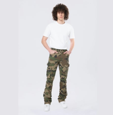 [US輸入]SMOKE RISEスモークライズ/STACKED FLARED CARGO STRAP CANVAS PANTS - WOOD CAMO