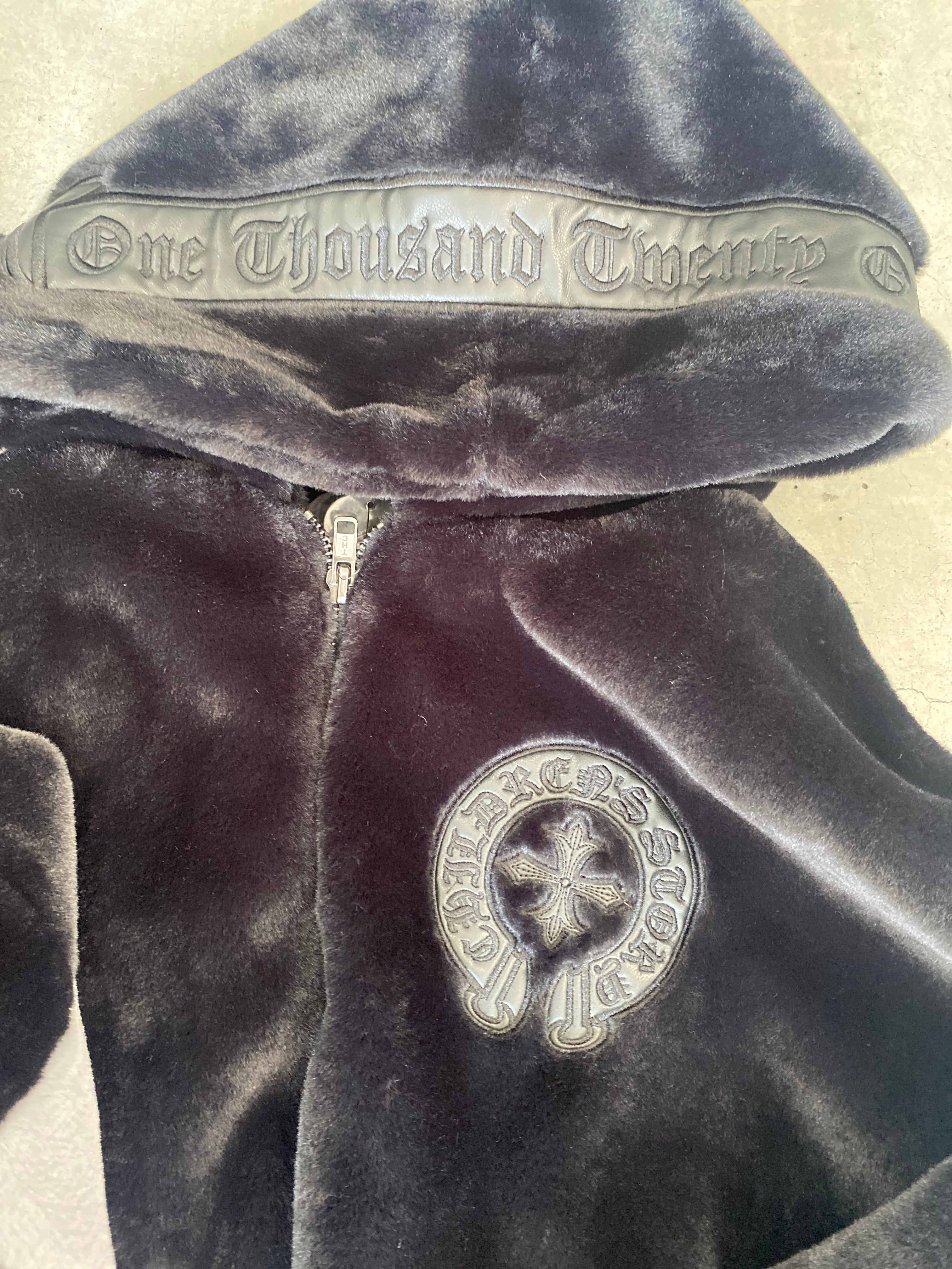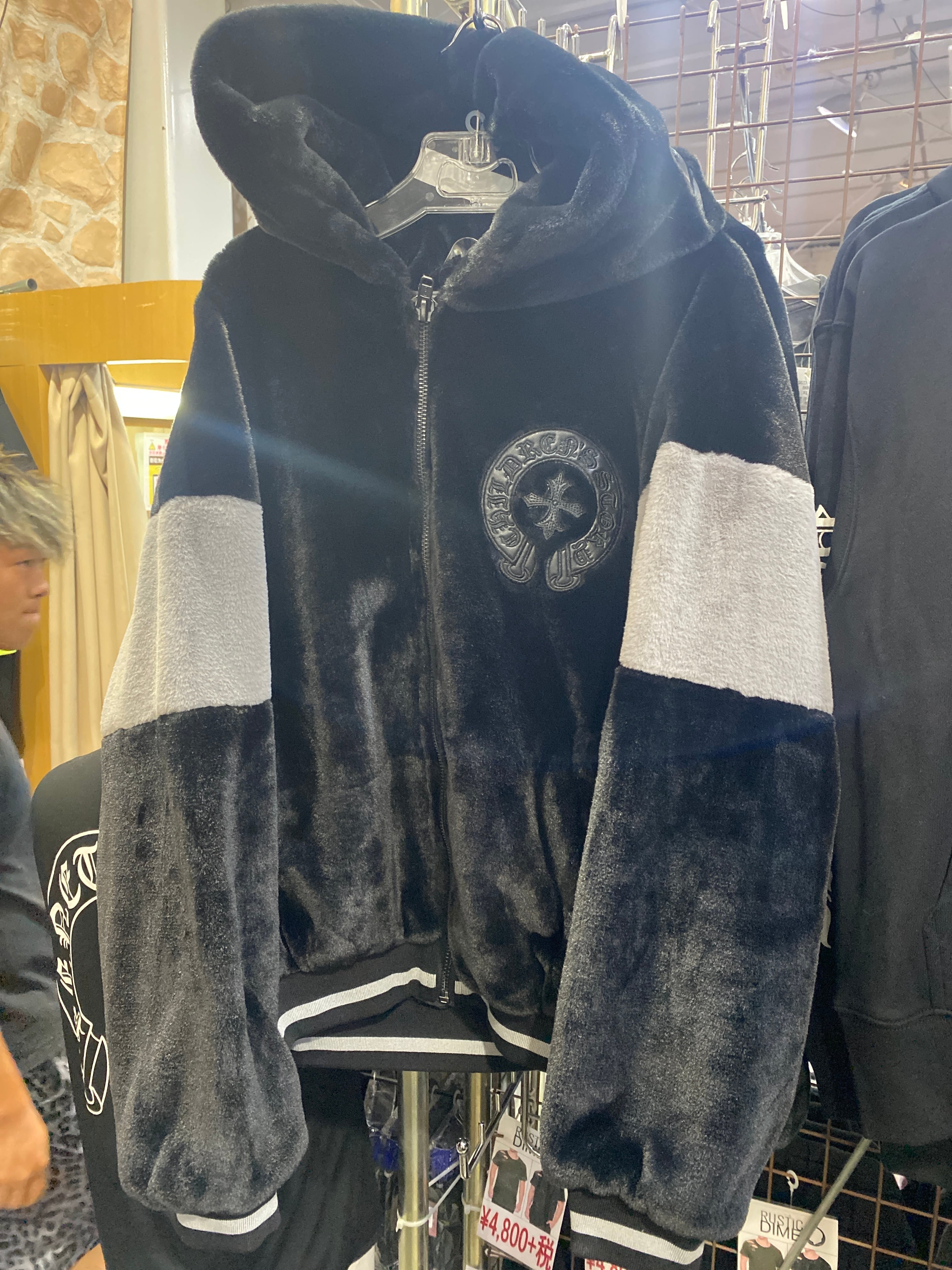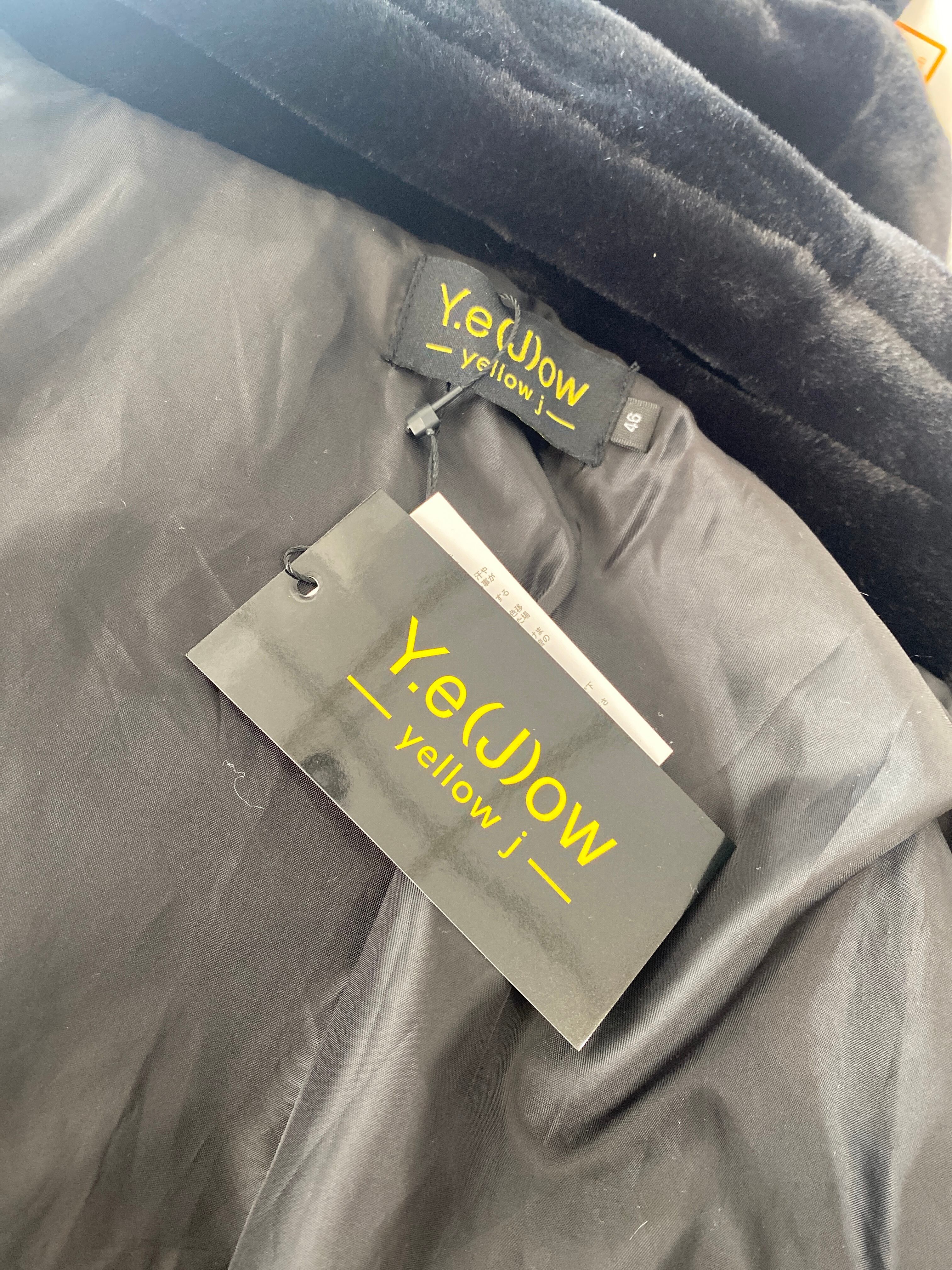 Y.e(J)ow -yellow j-紋章ファーZIPフードジャケット ブラック/ブラック