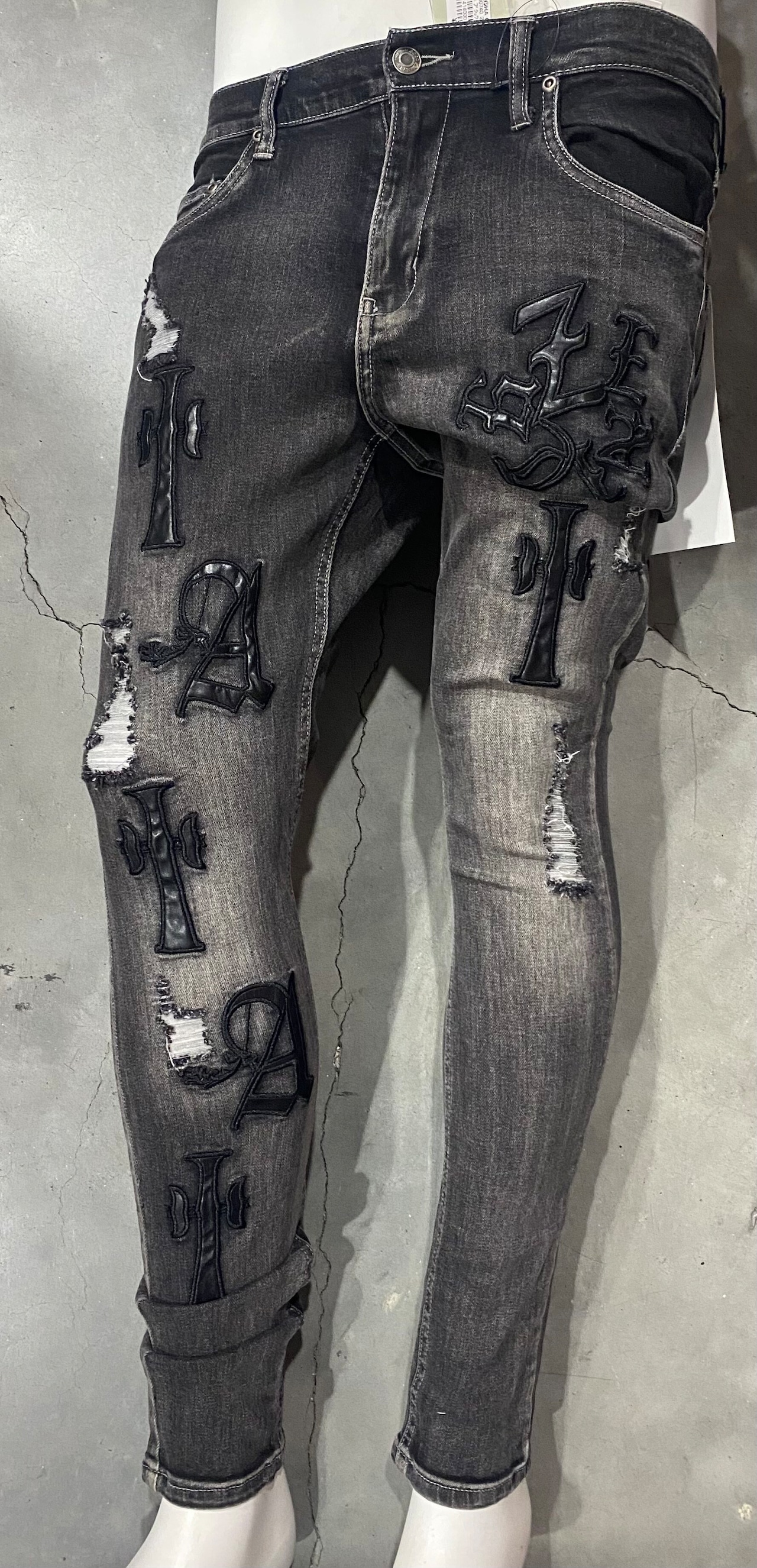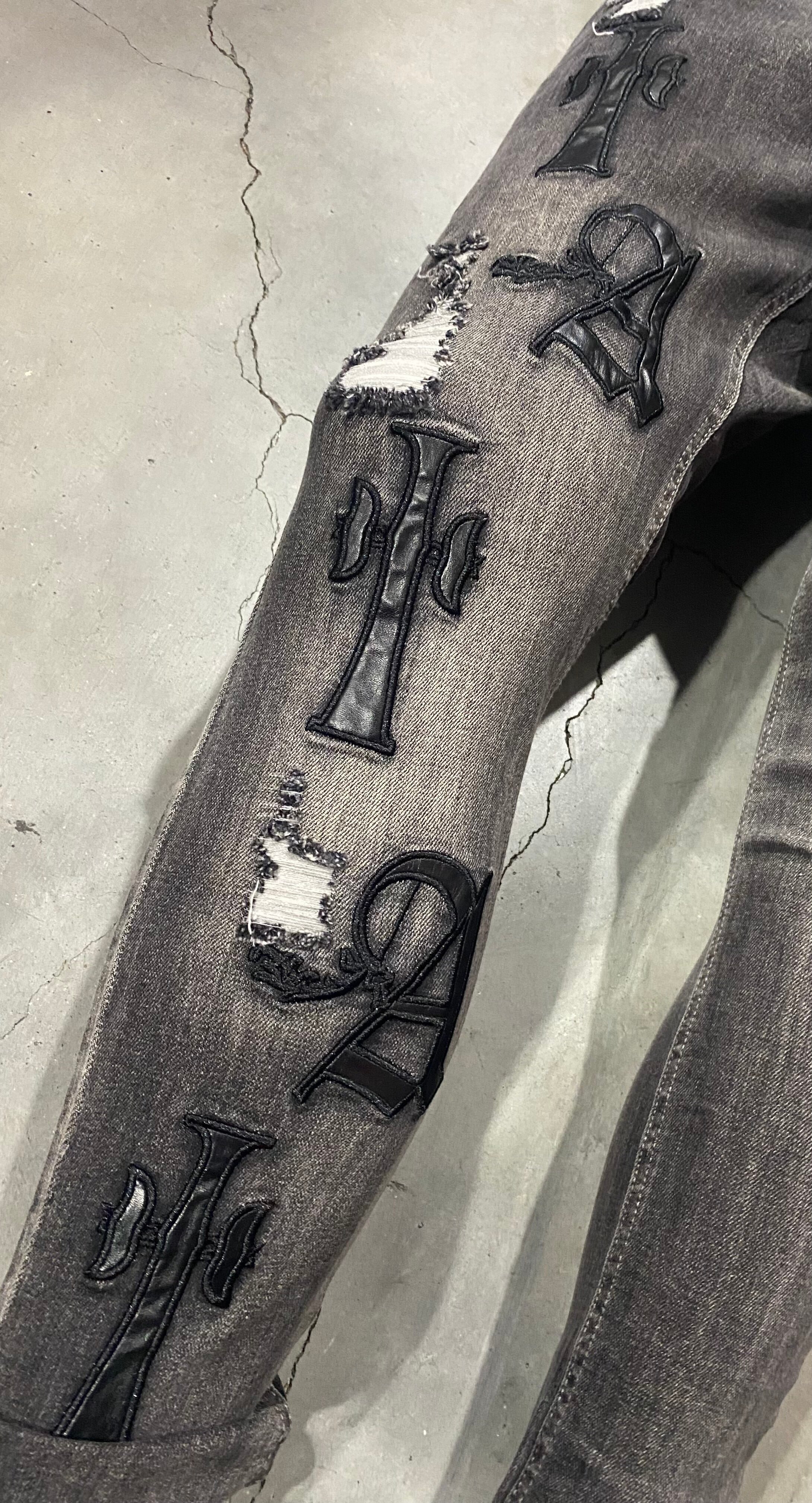 PUレザーワッペンに加え、ダメージ加工、洗い加工が絶妙にマッチした