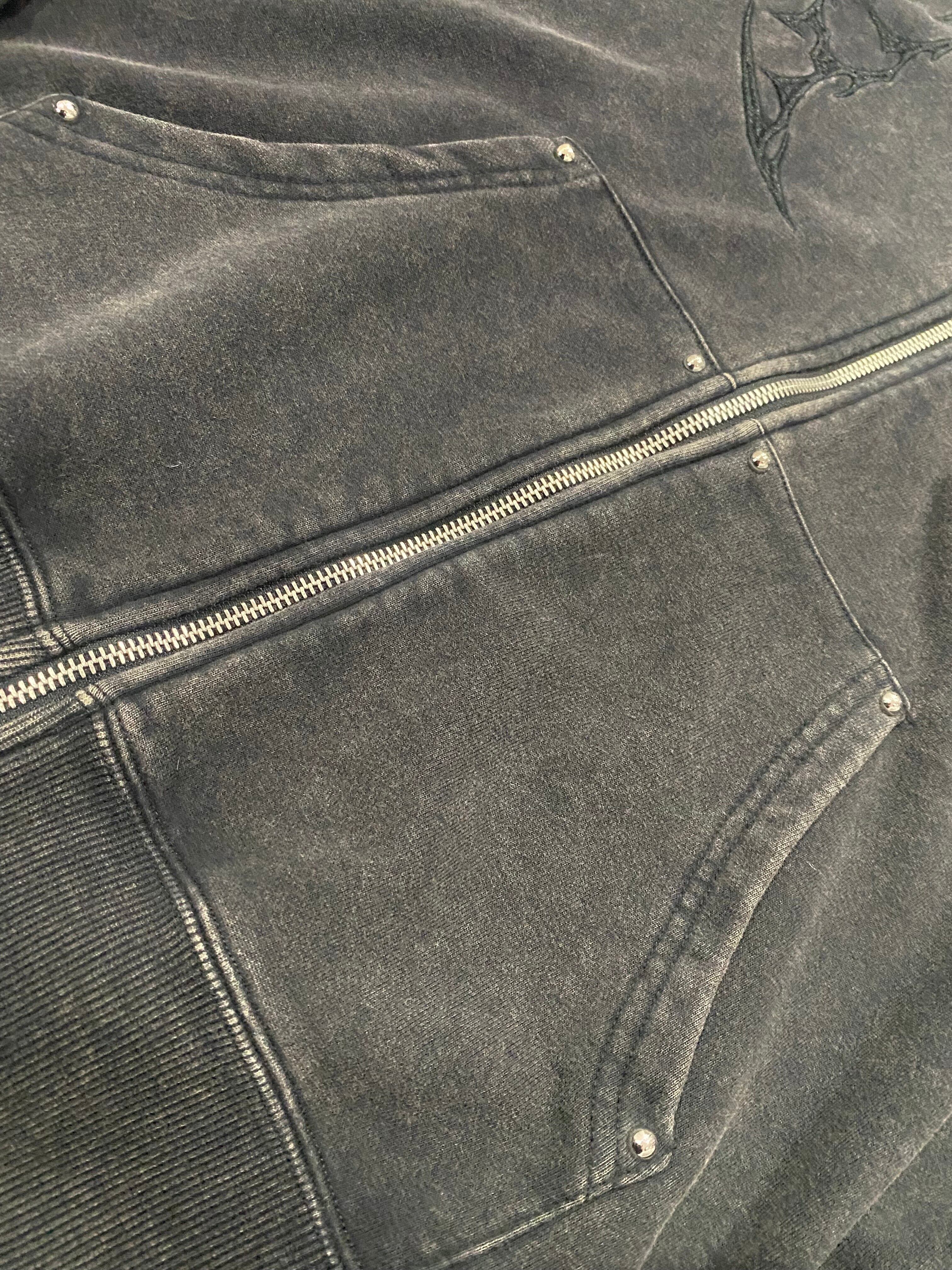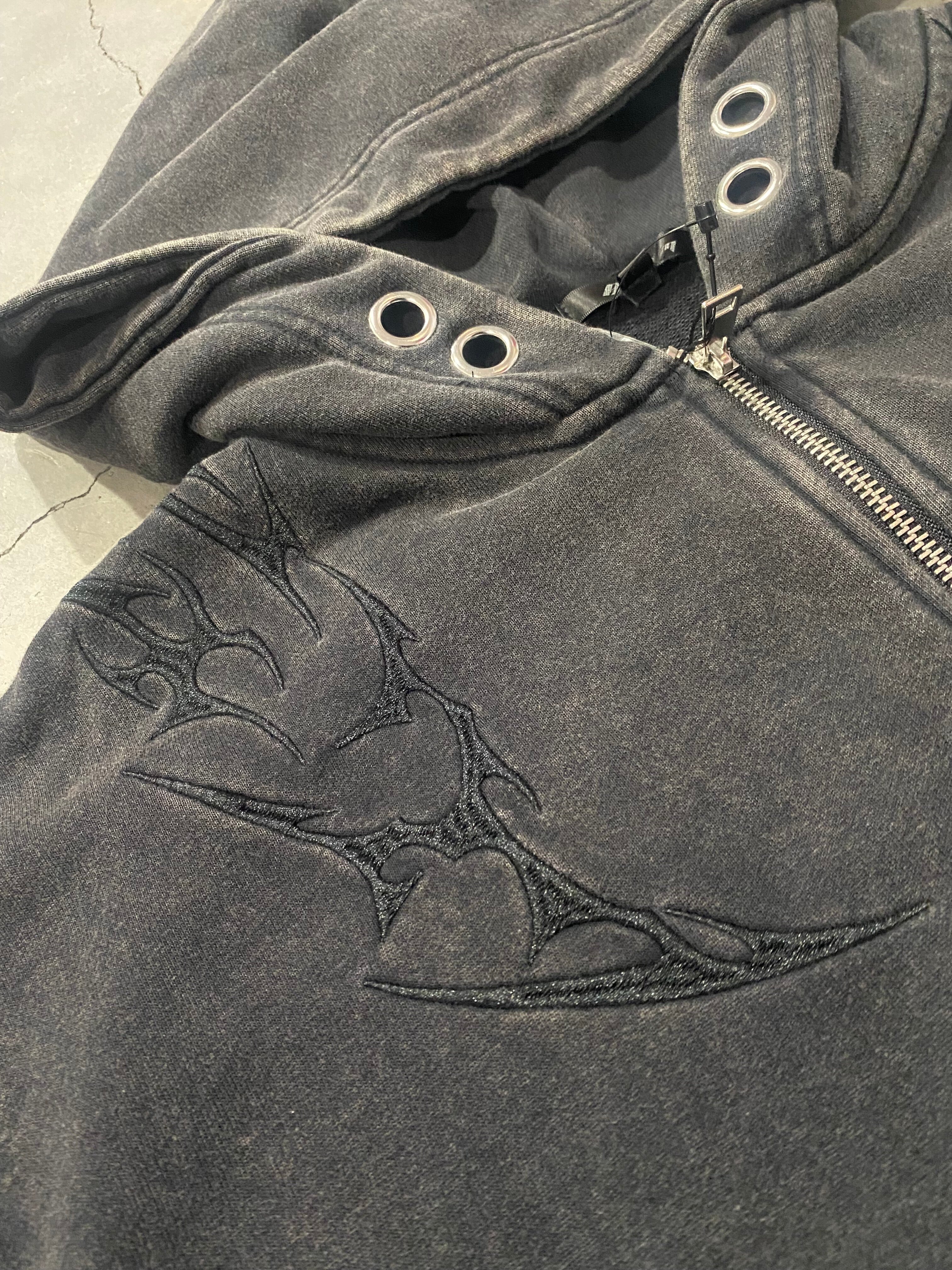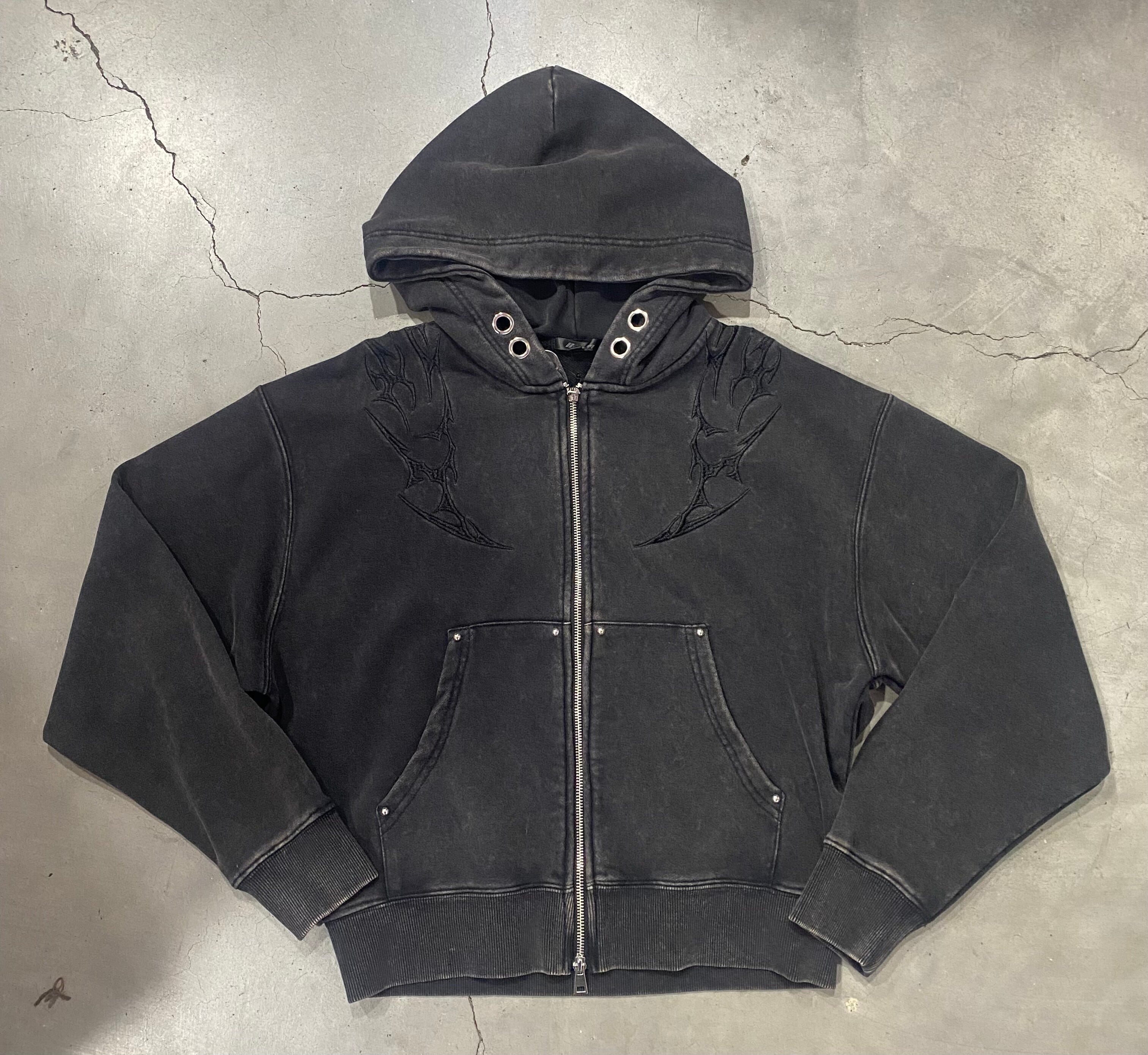 Resham/レーシャム パーカー ケミカル加工 トライバル刺繍 ショート丈 ジップパーカー/裏毛/ダブルジップ/メンズ/レディース/ユニセックス メンズ レディースパーカー ケミカル加工 トライバル刺繍 ショート丈 ジップパーカー/裏毛/ダブルジップ/メンズ/レディース/ユニセックス メンズ レディース