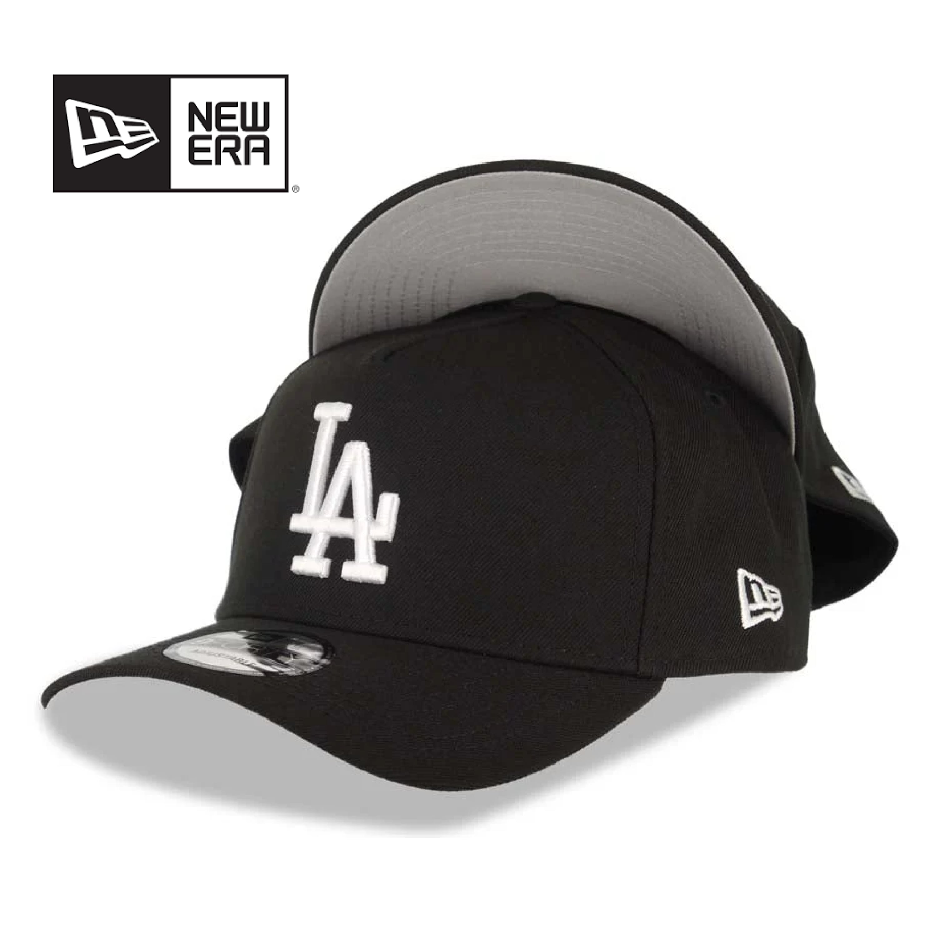 [US輸入]New Era/ニューエラ Los Angeles Dodgers MLB 9FORTY 940 Adjustable A-Frame Cap Hat Black Crown/Visor White Logo Gray UV