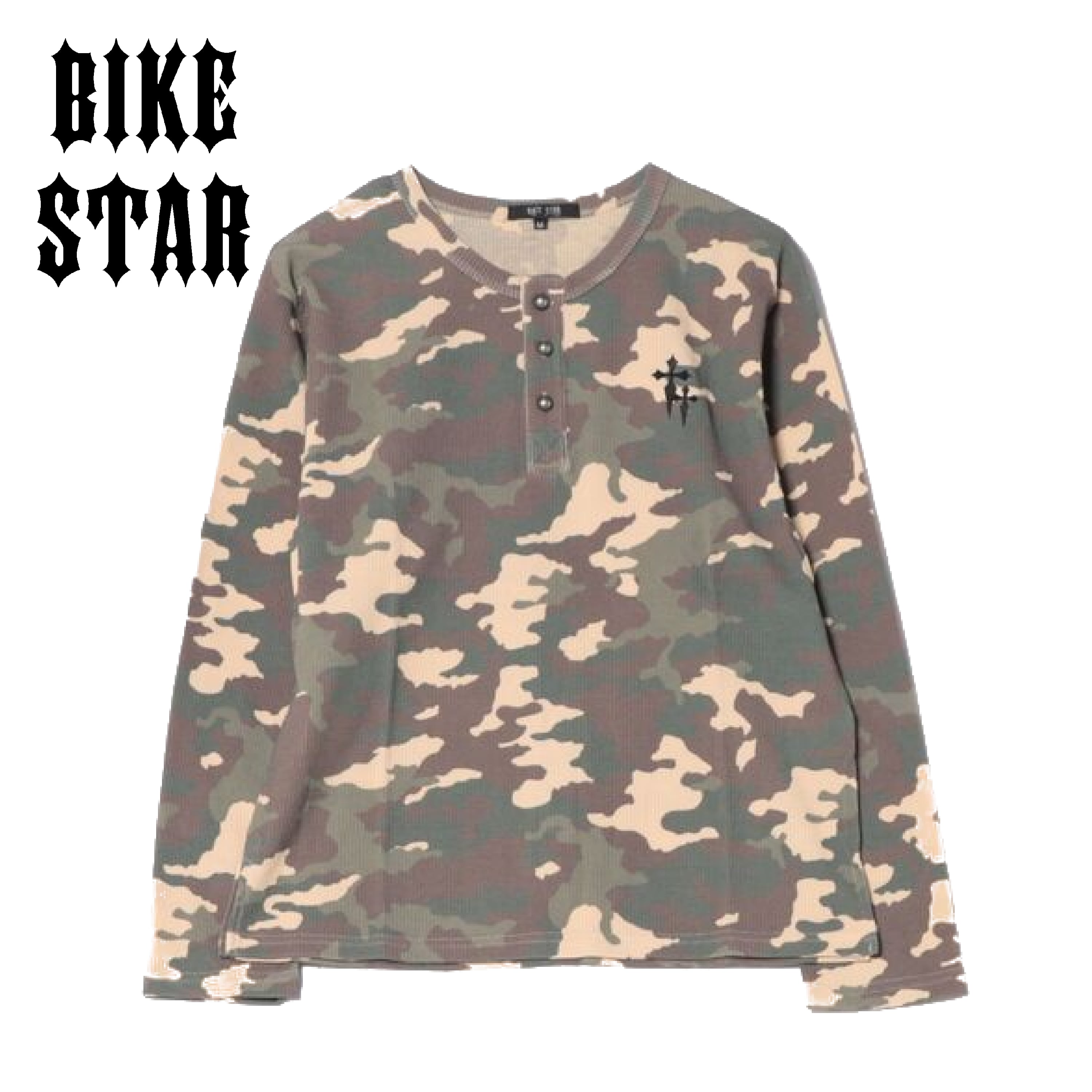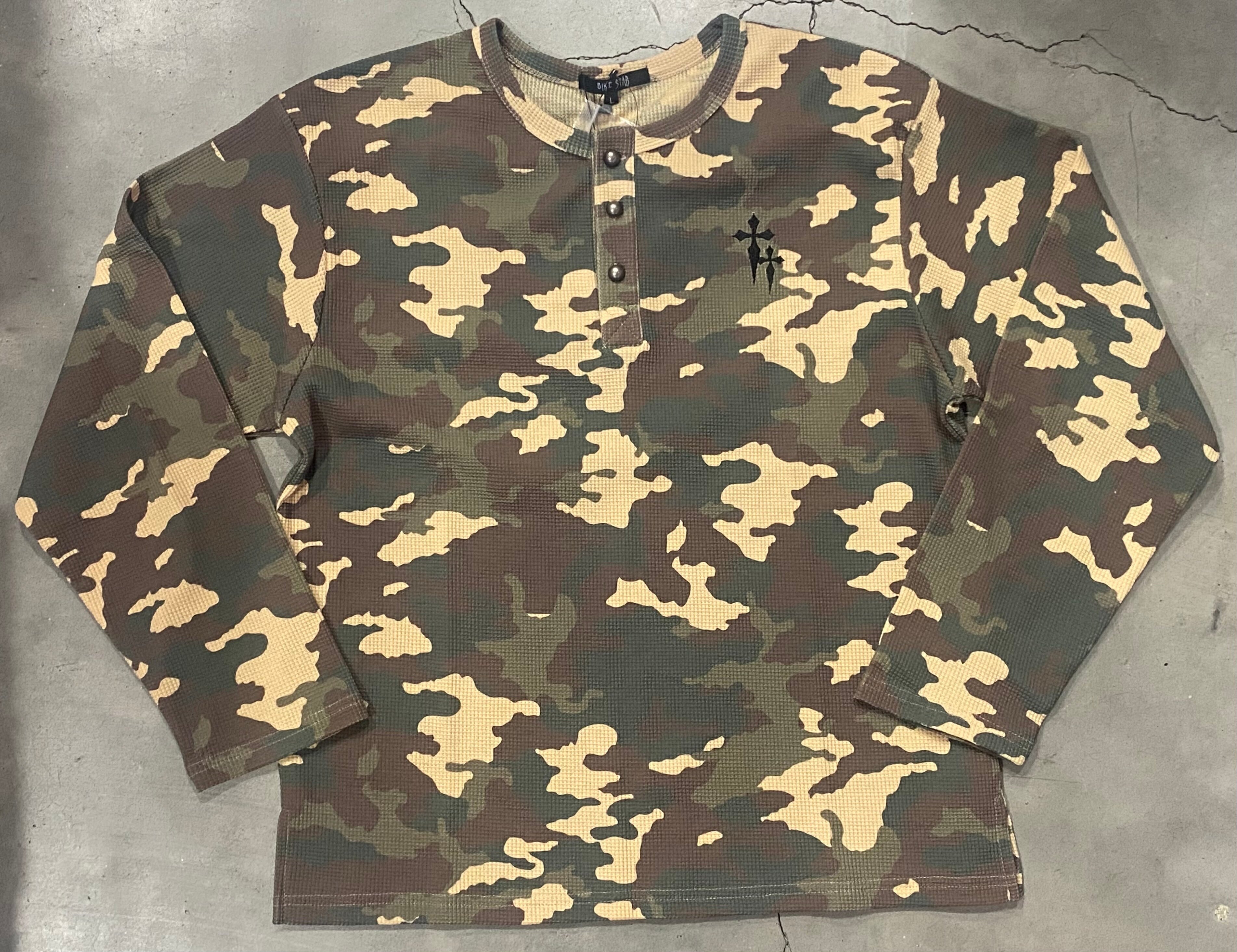 BIKE STAR サーマル 迷彩 ヘンリーネック ロンT