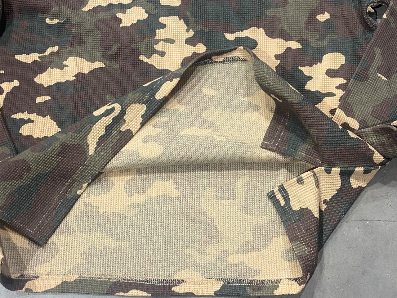 ヴィンテージ風クロス刺繍迷彩ワッフルダメージロンTが登場しました。