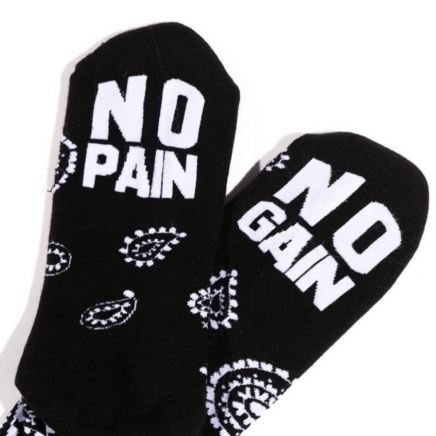 ペイズリー柄の新作ソックスが登場。底面に「NO PAIN NO GAIN」のそれぞれの文字をデザインした細部までこだわったソックス。