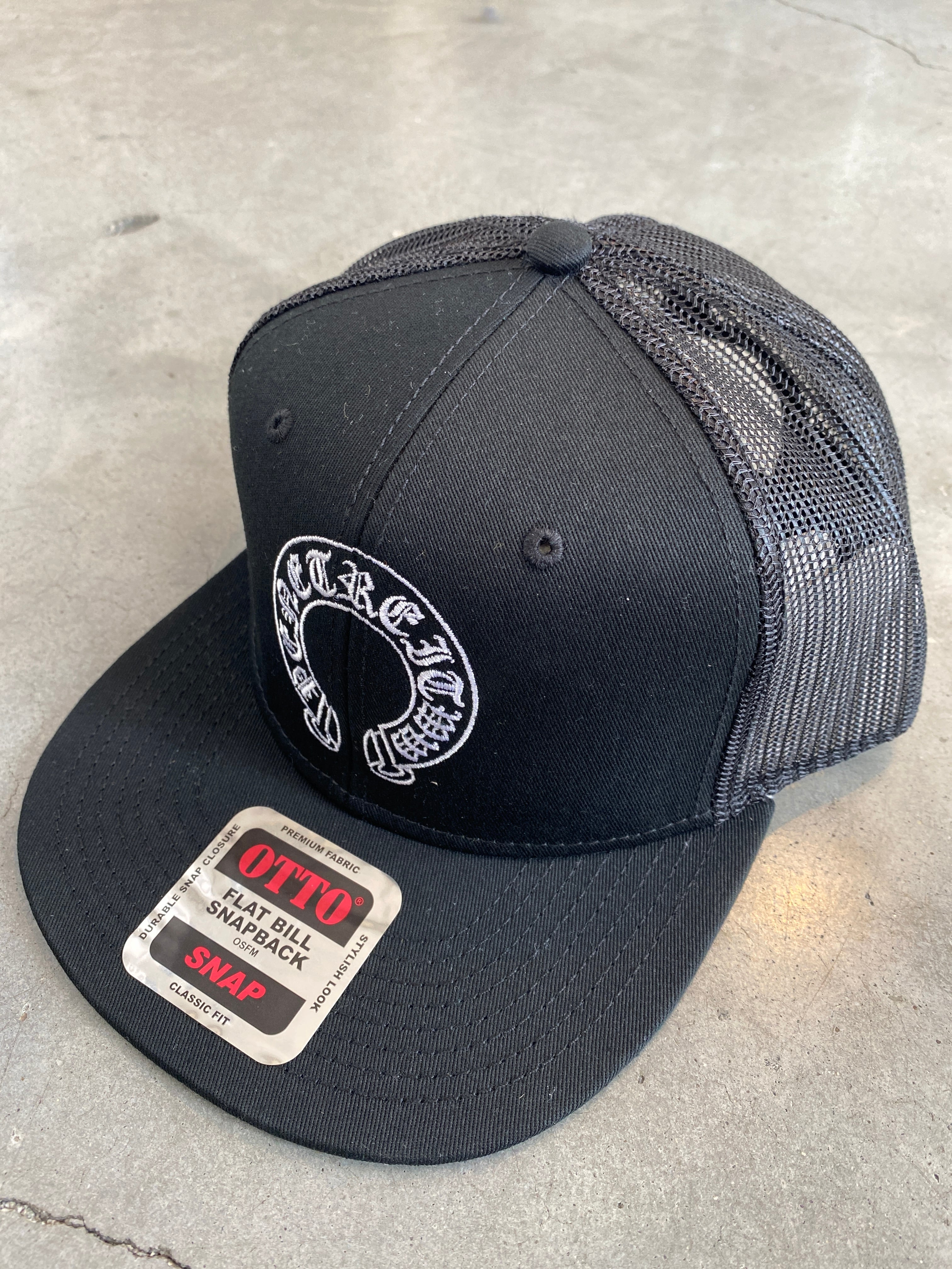 "紋章"フラットバイザーBBメッシュキャップ BK/BK
