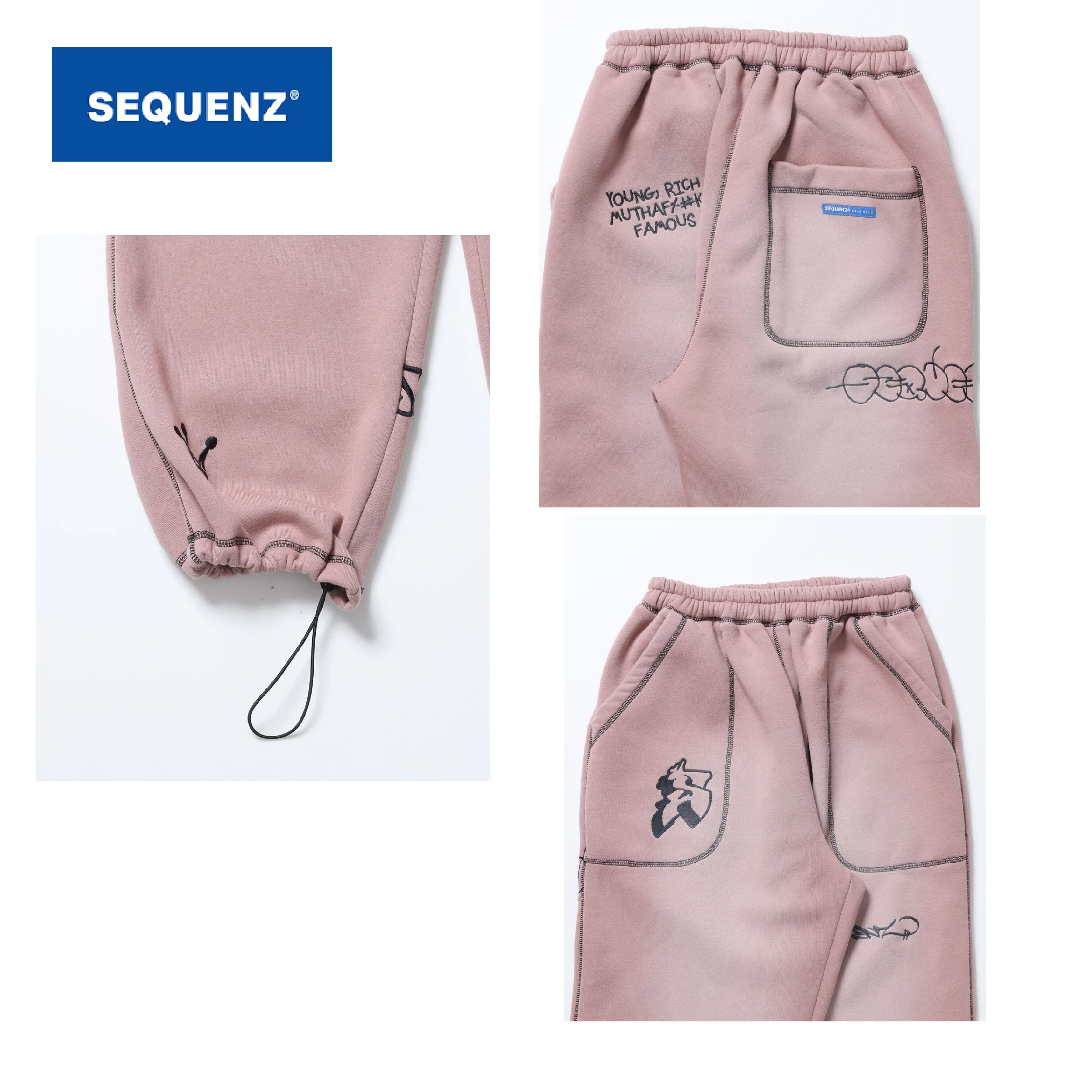 [SET UP可能] SEQUENZ(シークエンズ) FADE SWEAT PANTS / ステッチ オーバーサイズ ヴィンテージライク フェード 裏起毛 ピンク